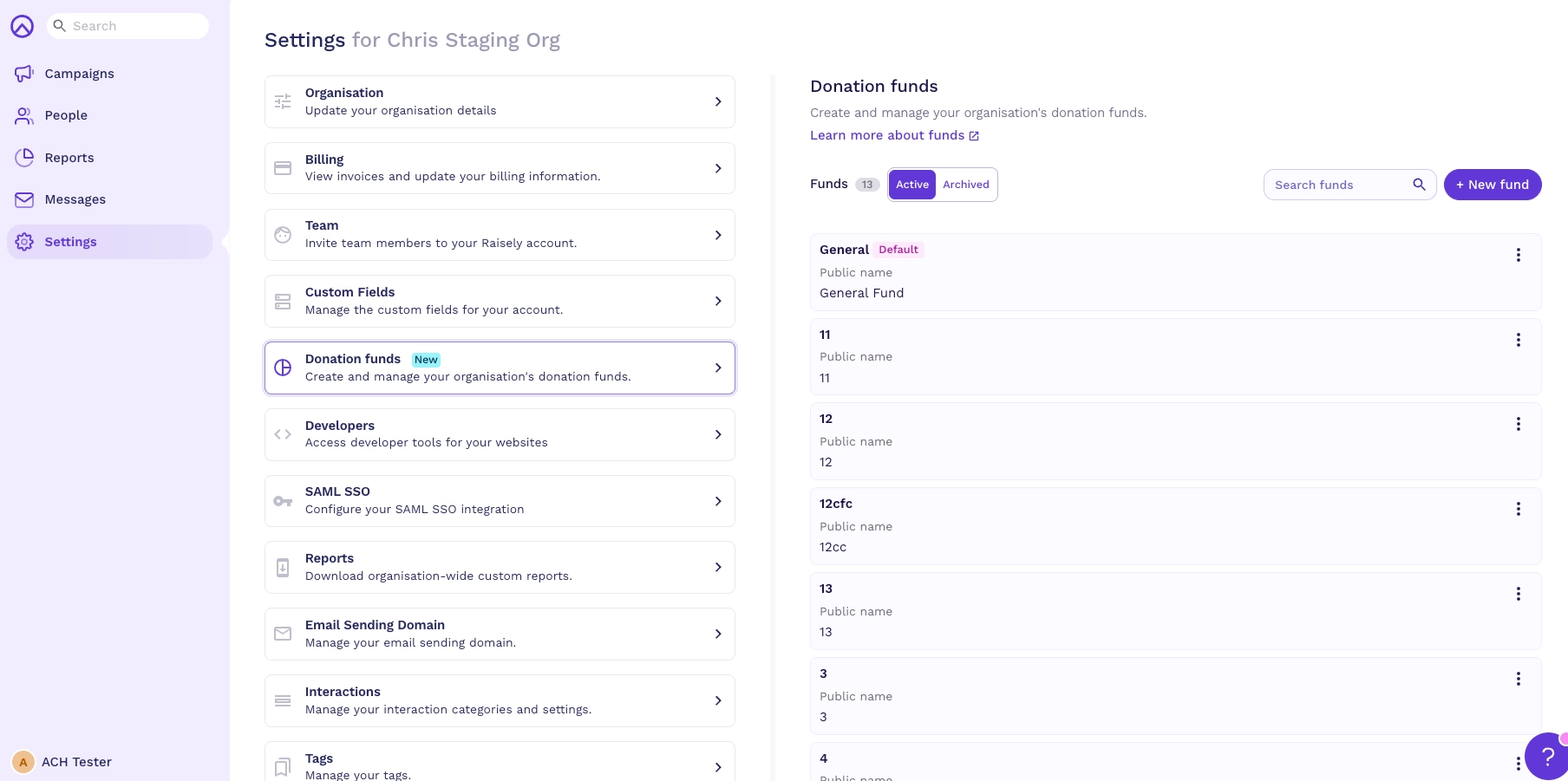 - Financial Tracking: Simplify your bookkeeping by aligning your Raisely data with your internal accounting funds.